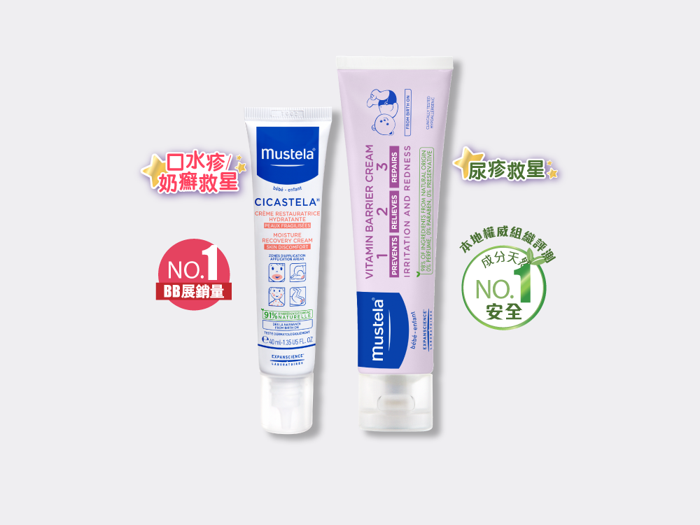 100%受訪父母信賴及回購*【Mustela皇牌初生退紅孖寶】! 「用咗pat pat 膏之後冇再見過紅patpat!呀仔瞓得舒服又少咗扭計。 」 「 真係救星! 用咗9個月從未失望!剛出生時BB臉經常紅腫敏感,試過好多產品都唔得,用咗呢套唔使一星期就改善到! 」 「 BB準備出牙,流好多口水...