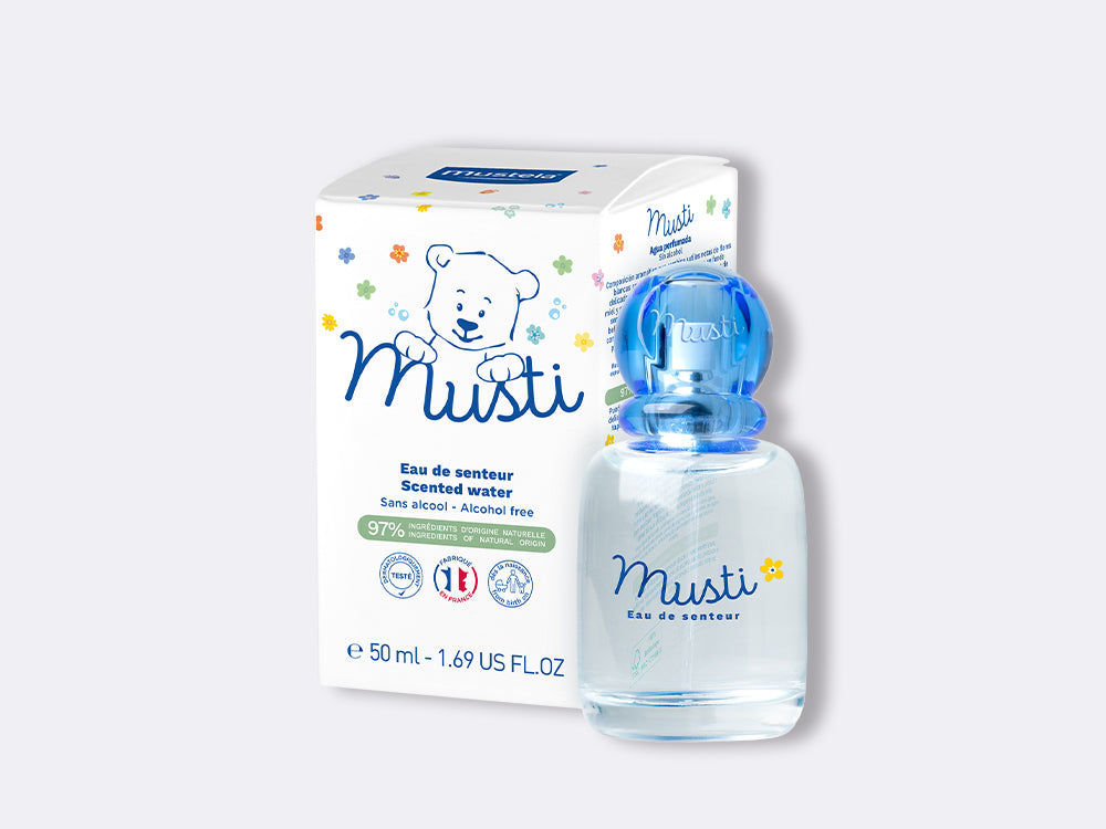 法國製造的Mustela的獨特嬰兒香水溫和地為嬰兒帶來清新花香和柔和感。前中調揉合淡淡的柑橘果香及玫瑰與丁香的甜花香,最後以沉實的琥珀作後調,香氣持續一整天。